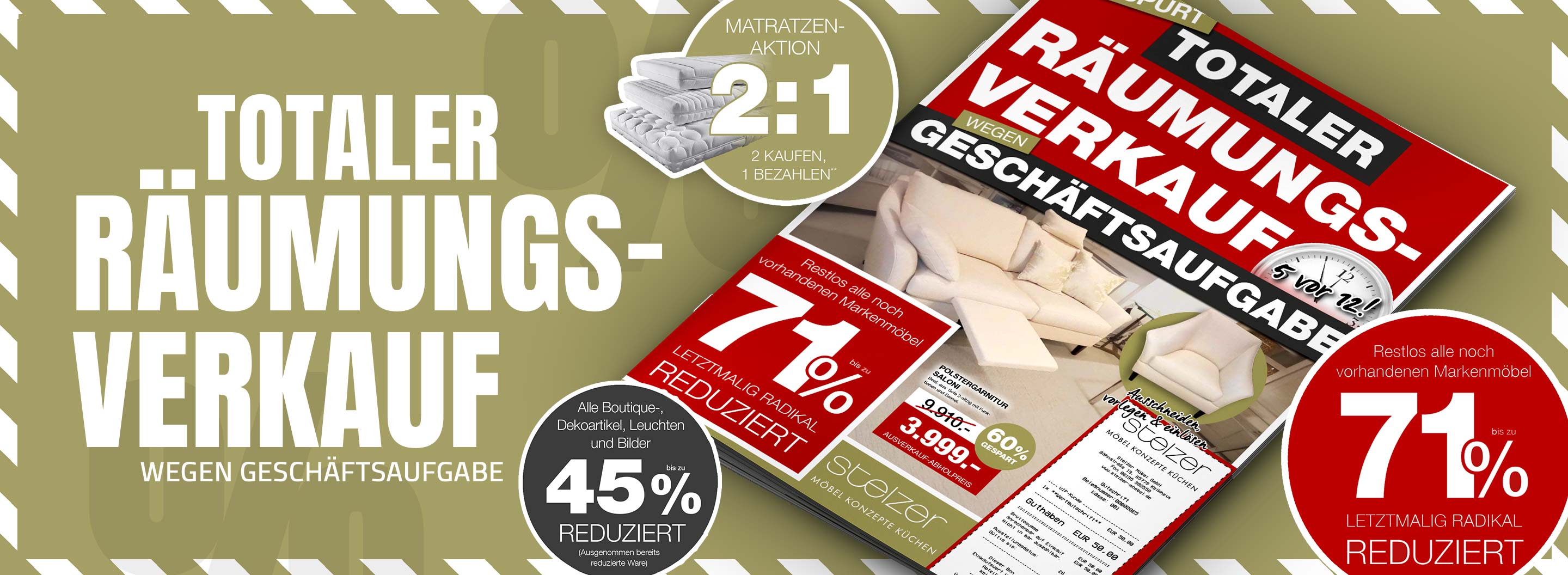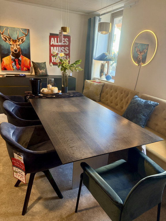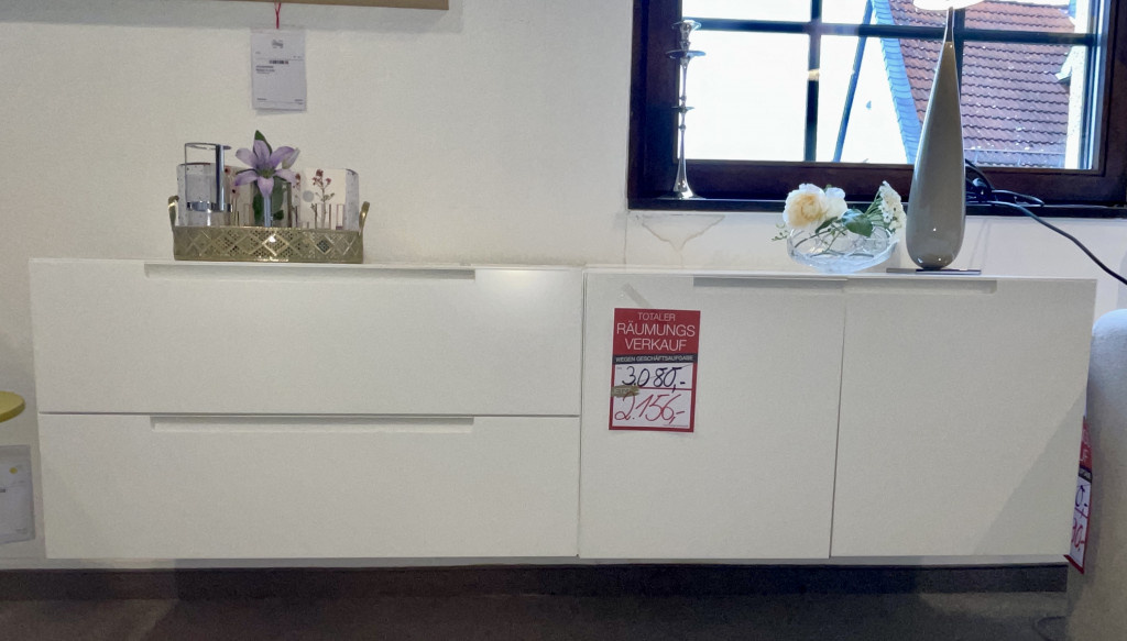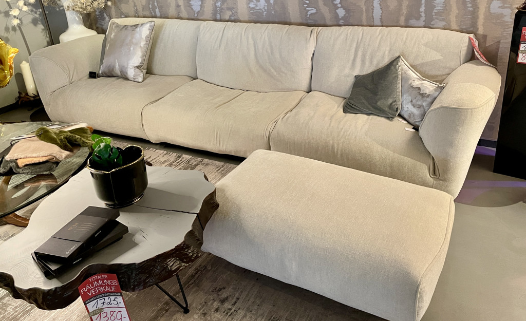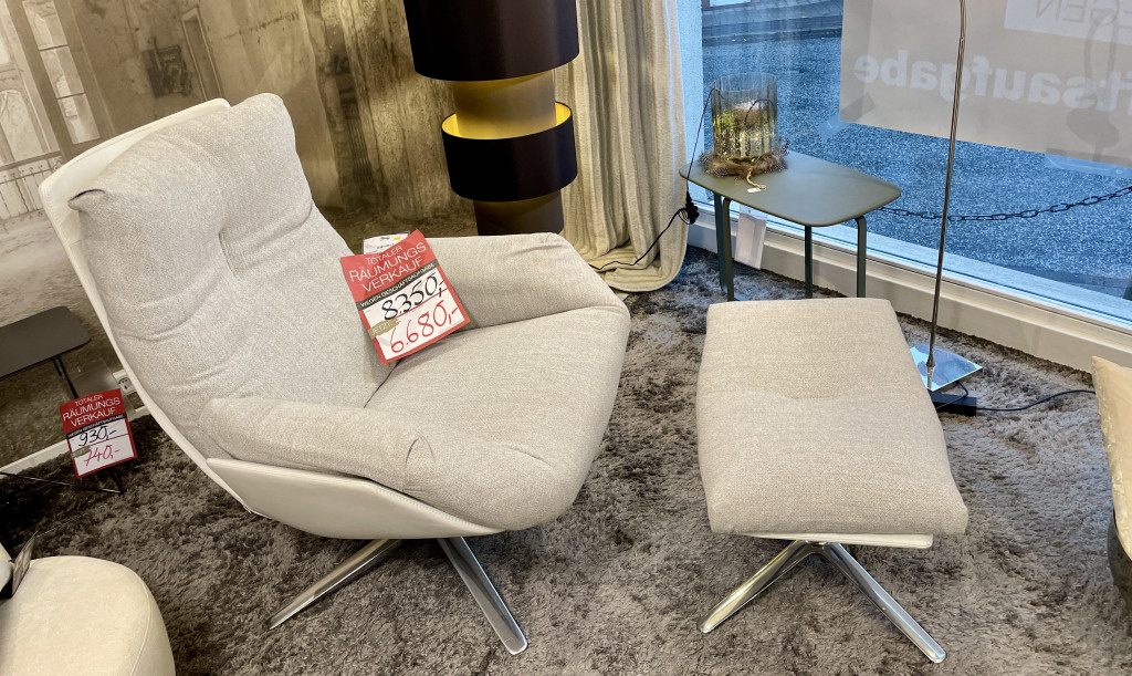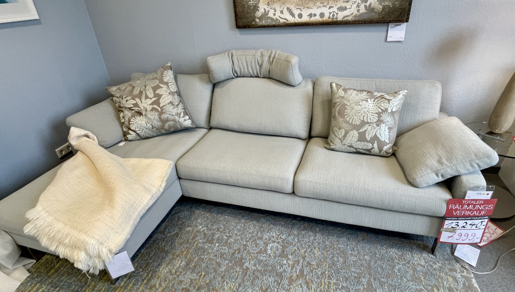 Der gesamte vorhandene Warenbestand an hochwertigen, aktuellen Markenmöbeln aller Sortimentsbereiche, Musterküchen, Leuchten, Heimtextilien, Bilder, Deko- und Geschenkartikel sowie Teppichen namhafter nationaler und internationaler Hersteller muss restlos raus!