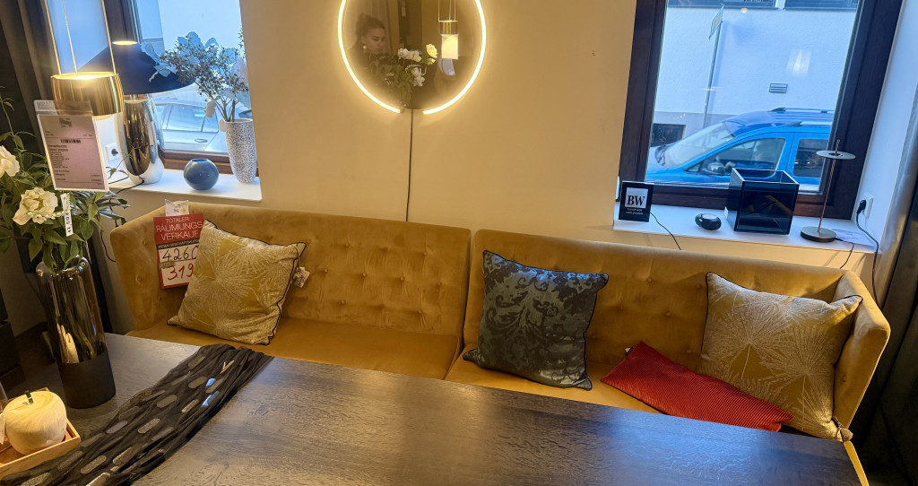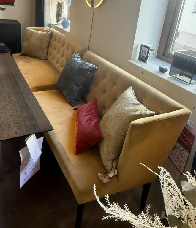 Abschlusselementkurze ArmlehneKnopfheftungBezug City Velvet reloadedFüße Eiche wengefarbig gebeizt