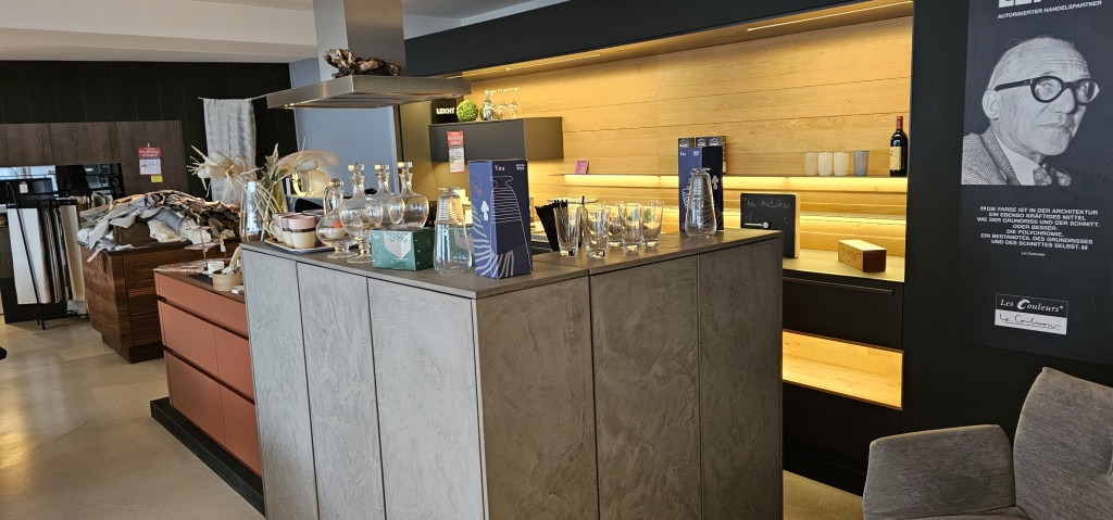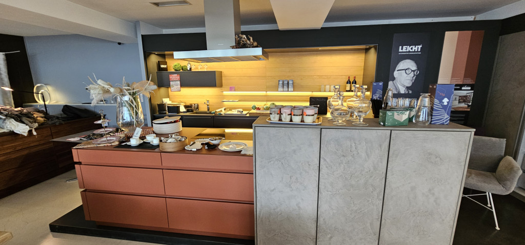 Die Einbauküche Avance von LEICHT ist in einem roten, matten Lack ausgeführt - kombiniert mit einer Zeile in BONDI anthrazit und einer Hochschrankzeile mit echter Betonfront! Die Inselseite ist mit einer Glasarbeitsplatte Ton in Ton mit der Front ausgestattet - hier ist die Variante der Glasplatte in der sehr kratzfesten, matten Ausführung ausgestattet - absolut pflegeleicht, kratzfest und hitzebeständig!!! Die Zeile ist mit einer Fenix-Arbeitsplatte (sehr angenehme, pflegeleichte Oberfläche) Ton in Ton auf die Bondi-Front in anthrazit abgestimmt worden.